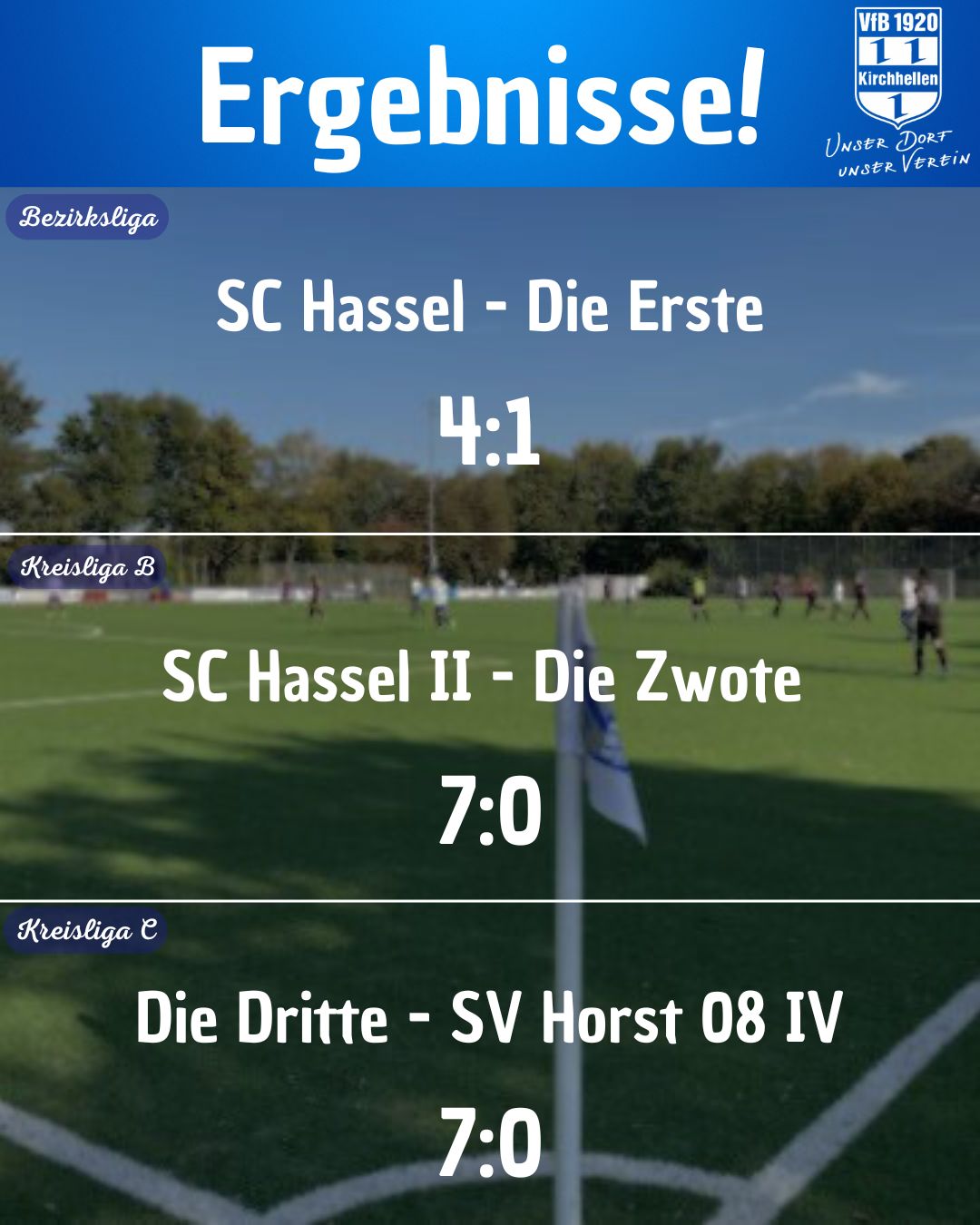 Am letzten Sonntag unterlag die Erste beim SC Hassel mit 1:4. Trotz frühem Führungstreffer von Maxi Löcker spielte der Tabellensechste ihr Heimspiel locker runter. Auch die Zweite hatte keine Chance in Hassel und unterlag sogar mit 0:7. Immerhin gewann die Dritte souverän zuhause mit 7:0 gegen Horst 08 IV.