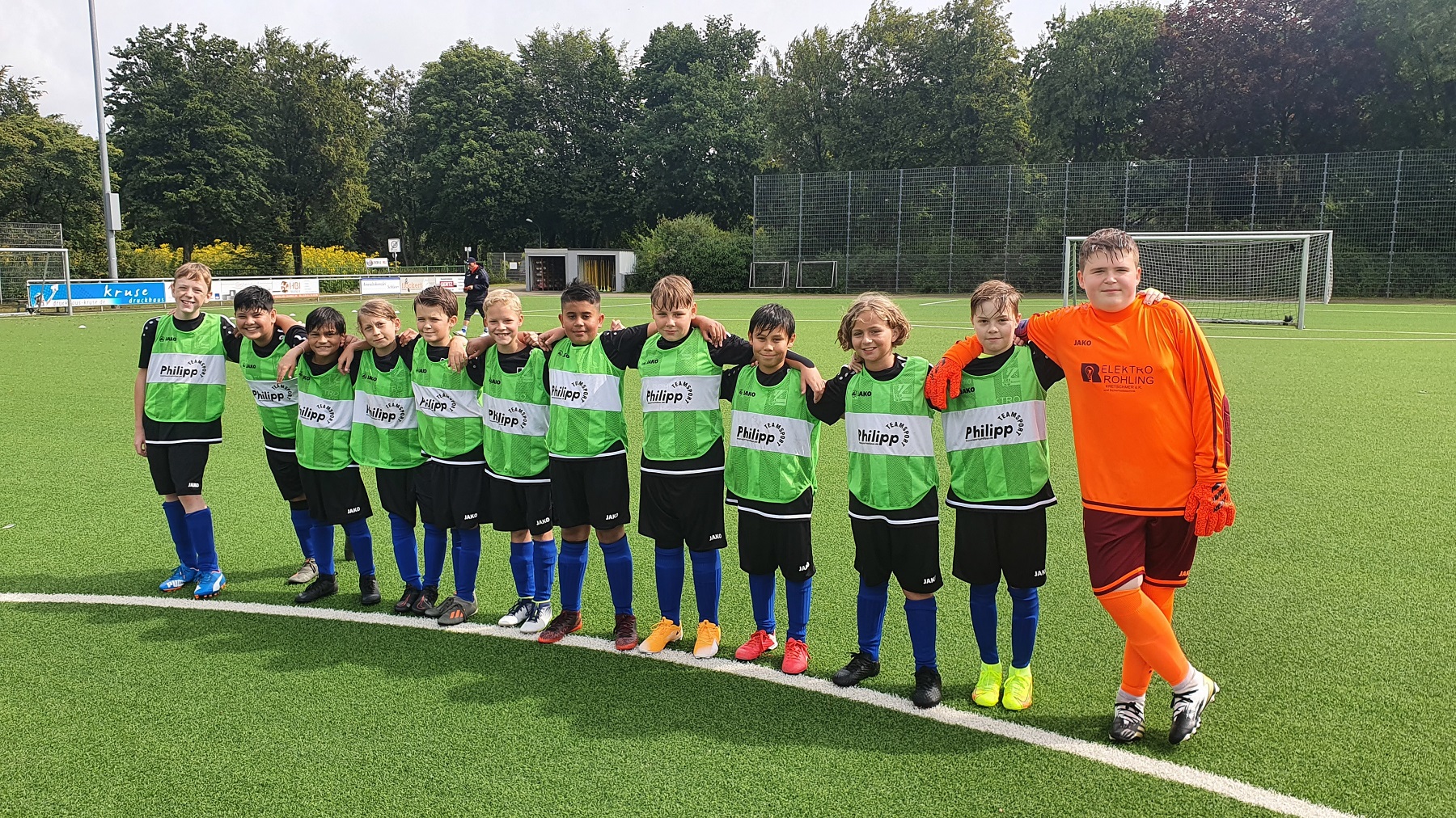 Nach kurzem, gegenseitigem Abtasten konnten die Spieler des VfB schnell die Oberhand gewinnen und gingen in der 7. Minute schließlich in Führung. Weitere Treffer folgten und am Ende hieß es dann tatsächlich 14:0 für die D4 des VfB Kirchhellen, wo sich neben zahlreichen Doppeltorschützen vor allem Johannes Steinmann mit fünf Treffern in der Torschützenliste verewigen konnte. Aber auch die solide und zu keinem Zeitpunkt vernachlässigte Abwehrleistung trug ihren Anteil an einem stets fairen Spiel und dem verdienten Sieg bei.