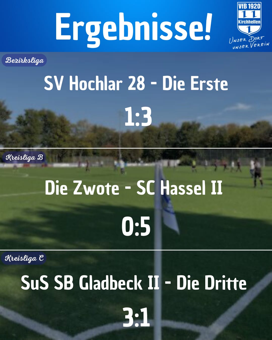 Die 1. Mannschaft spielt am heutigen Freitagabend gegen die SG Preußen Gladbeck. Das wegen des Derbys von Sonntag vorgezogene Spiel, findet um 19.30 Uhr auf dem Kunstrasenplatz an der Konrad-Adenauer-Allee 1 in Gladbeck statt. Am Sonntag spielt die 3. Mannschaft zuhause gegen YEG Hassel III. Anstoß ist zur Derbyfreundlichen Uhrzeit, um 13.15 Uhr. Die Zweite hat Spielfrei.