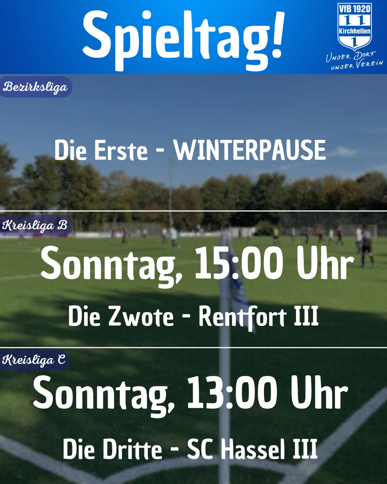 Am vergangenen Sonntag haben wir uns vom VfB Kirchhellen wieder bei der bundesweiten Aktion vom 11 FREUNDE Magazin, dem Tag der Amateure, beteiligt. Vor über 400 Zuschauern siegte der VfB Kirchhellen knapp mit 2:1 gegen Preußen Gladbeck.