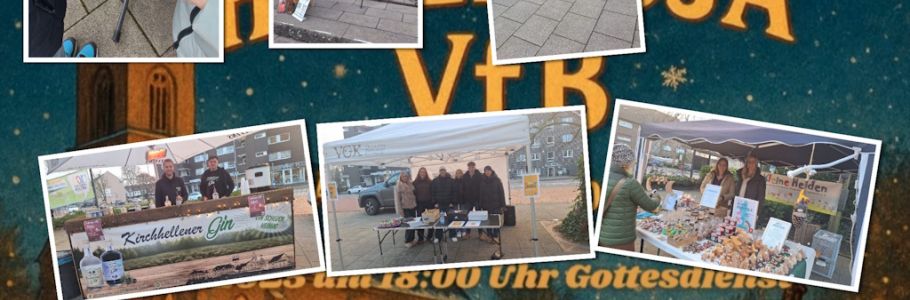 Die zweite Ausgabe des VfB-Weihnachtszaubers findet am morgigen Samstag, den 13. Dezember, statt. Der Adventszaubermarkt an der Kirche St. Johannes beginnt um 16 Uhr. Kirchhellener Kindergärten werden unter anderem Waffeln backen. Auch Annemaries Foodtruck wird an der Kirche stehen. Henning Rottmann und Julian Knipping vom „Kirchhellener Gin“ servieren ihren „Glüh-Gin“ Der Fußballgottesdienst in der Kirche beginnt um 18 Uhr.
