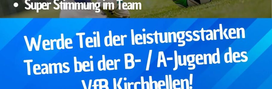 Der VfB Kirchhellen sucht für seine vier A- und B-Jugendmannschaften interessierte Fußballer! Du bist Jahrgang 2007, 2008, 2009 oder 2010? Dann komm gerne zum Probetraining bei uns vorbei. Dich erwarten motivierte und lizensierte Trainer, tolle Kunstrasenplätze und ambitionierte Mitspieler.
