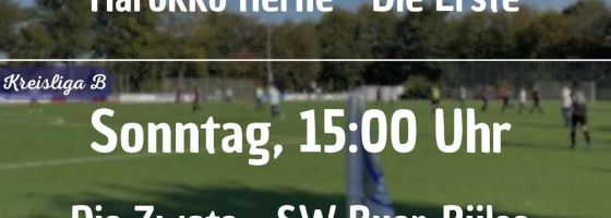 Am Sonntag heißt es für unsere Erste: Rückrundenstart! Der Gegner ist Marokko Herne, die als Tabellendreizehnter dicht vor den Abstiegsrängen platziert sind. Das Hinspiel gewann der VfB mit 3:0 - diesmal kommt es aber auf dem Herner Ascheplatz zum Rückrundenduell. Anstoß ist um 14.30 Uhr! Unser Dorf - unser Verein!