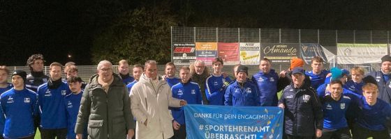 Und wieder wurde der Landessportbund NRW im Rahmen der Aktion „Ehrenamt überrascht“ auf ein tolles ehrenamtliches Engagement im VfB aufmerksam. Christian Plewa wurde zu Beginn des Trainings der ersten Mannschaft von unserem Präsidenten Lambert Bergemann und Peter Zimmermann und Ulrich van Oepen vom Team Ehrenamt „überrascht“ und es wurde ein Überraschungspaket überreicht.